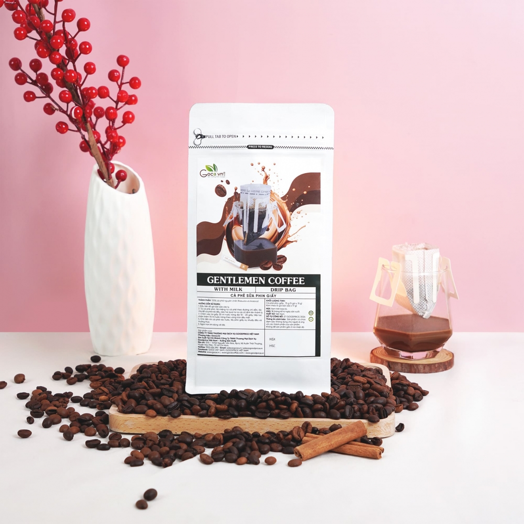 Gentlemen Coffee - Paper Drip Iced Coffee With Milk is a blend that harmonizes the rich bitterness of original roasted coffee with a subtle sweetness from milk, creating a perfectly balanced cup of milk coffee specifically crafted for men. It helps sharpen the mind, maintain high concentration, and boost work productivity.