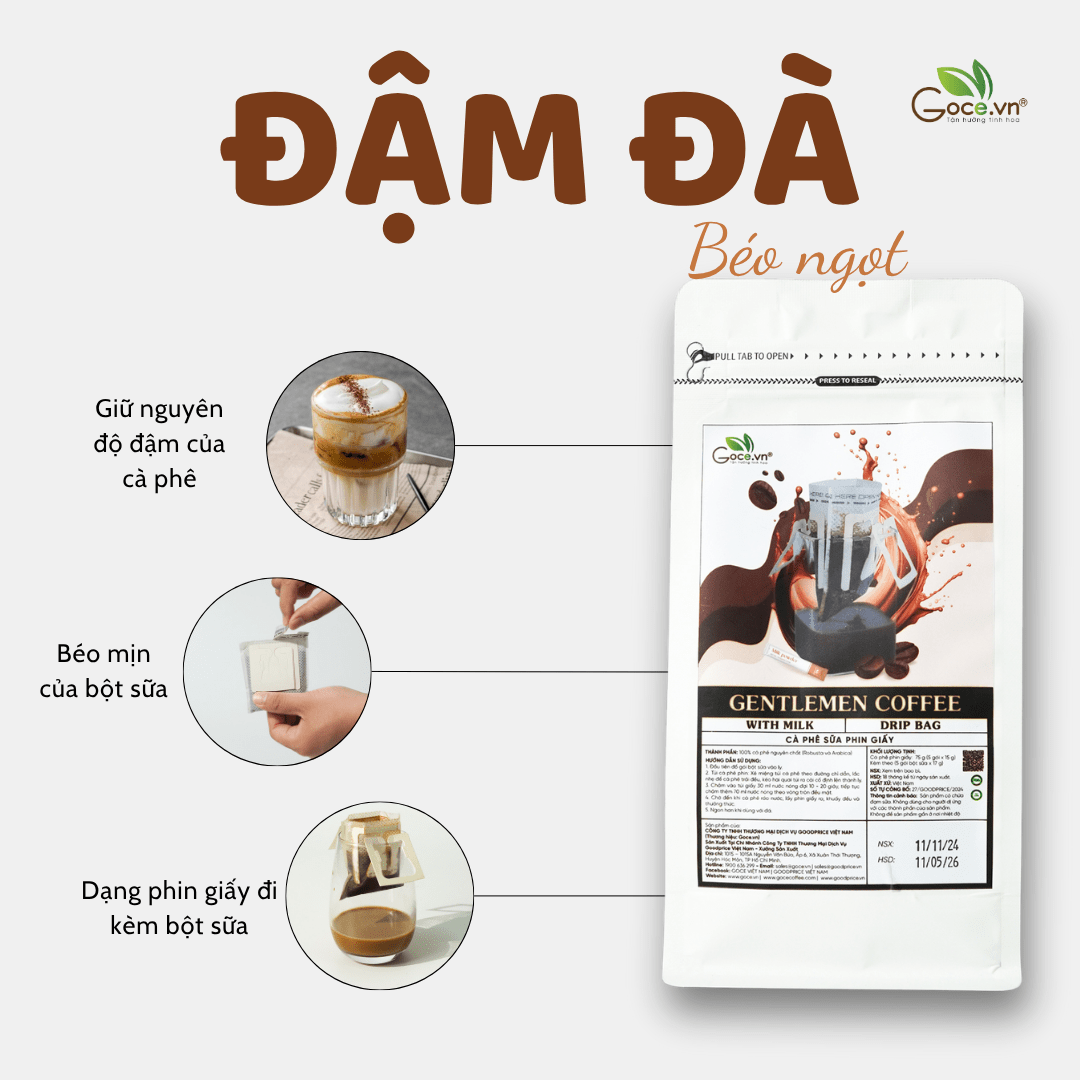 - Gentlemen Drip bag coffee with milk powder is quick and convenient anywhere.