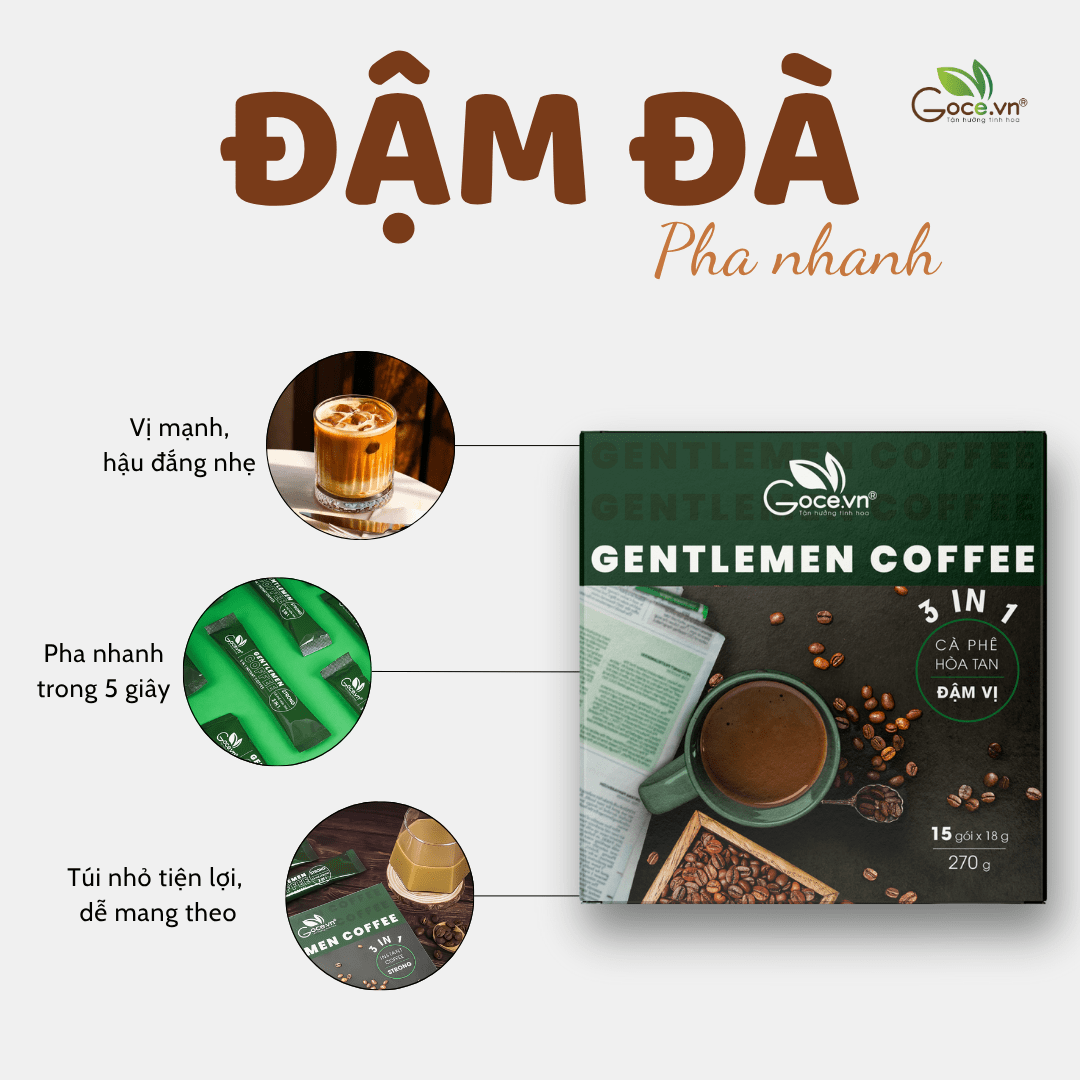 - Gentlemen Strong instant coffee ready in 5 seconds.