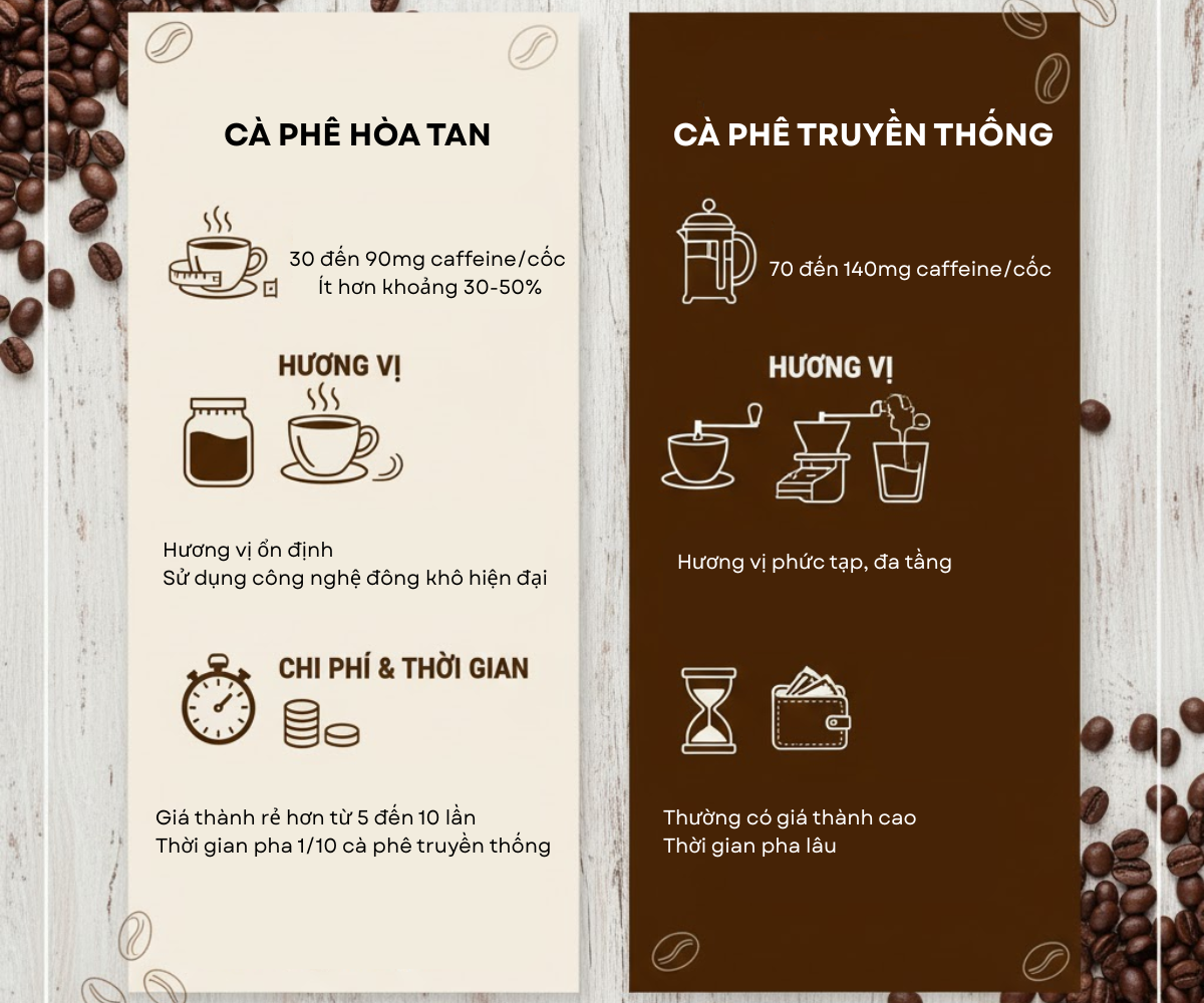 Unlike traditional coffee which depends heavily on brewing techniques, water temperature and extraction time, instant coffee always gives consistent results, suitable for those who want a stable experience every time they enjoy it.