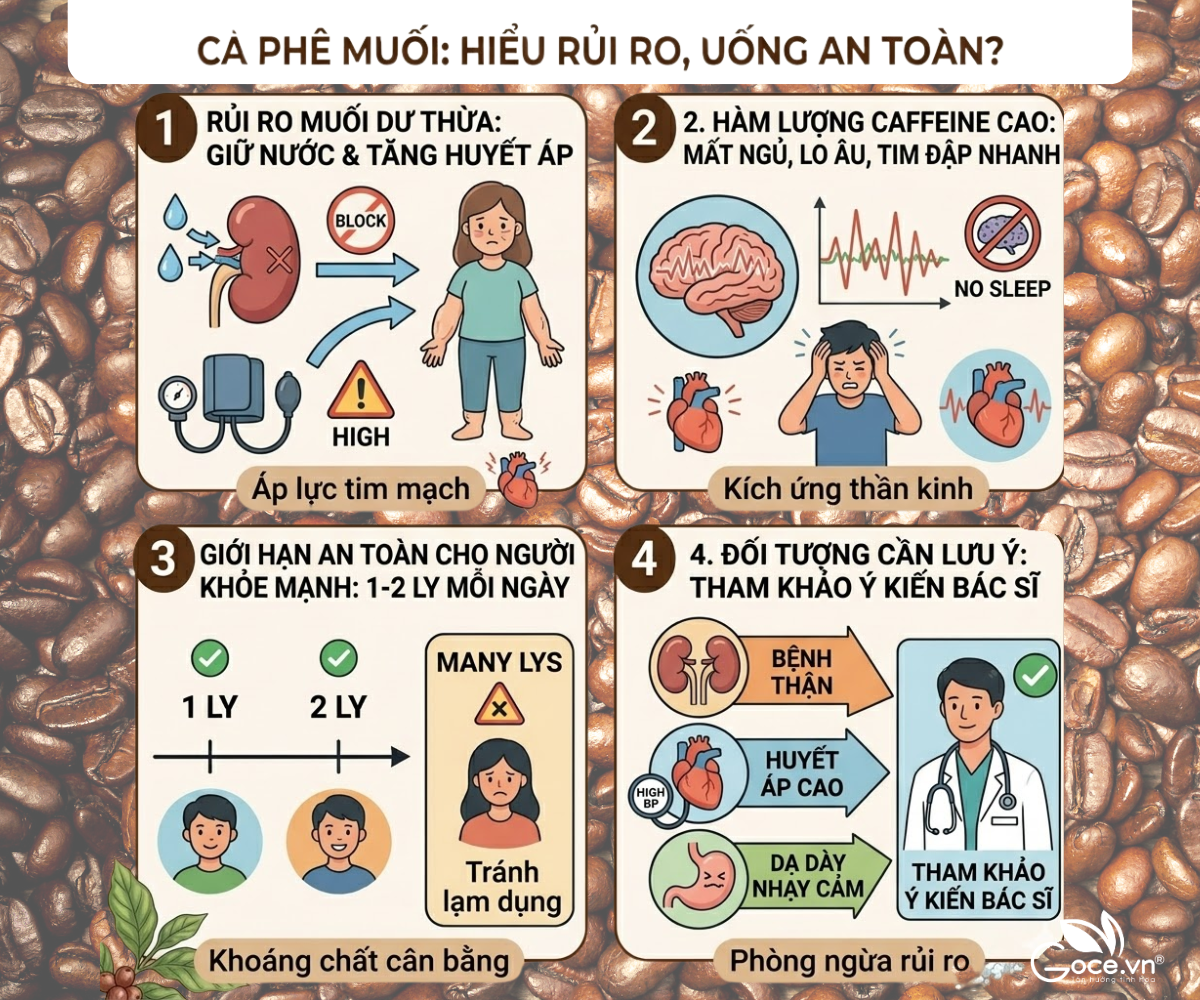 For healthy adults, a reasonable limit is 1–2 cups per day. People with high blood pressure, kidney disease, or sensitive stomach conditions should consult a doctor before making salt coffee a daily habit.