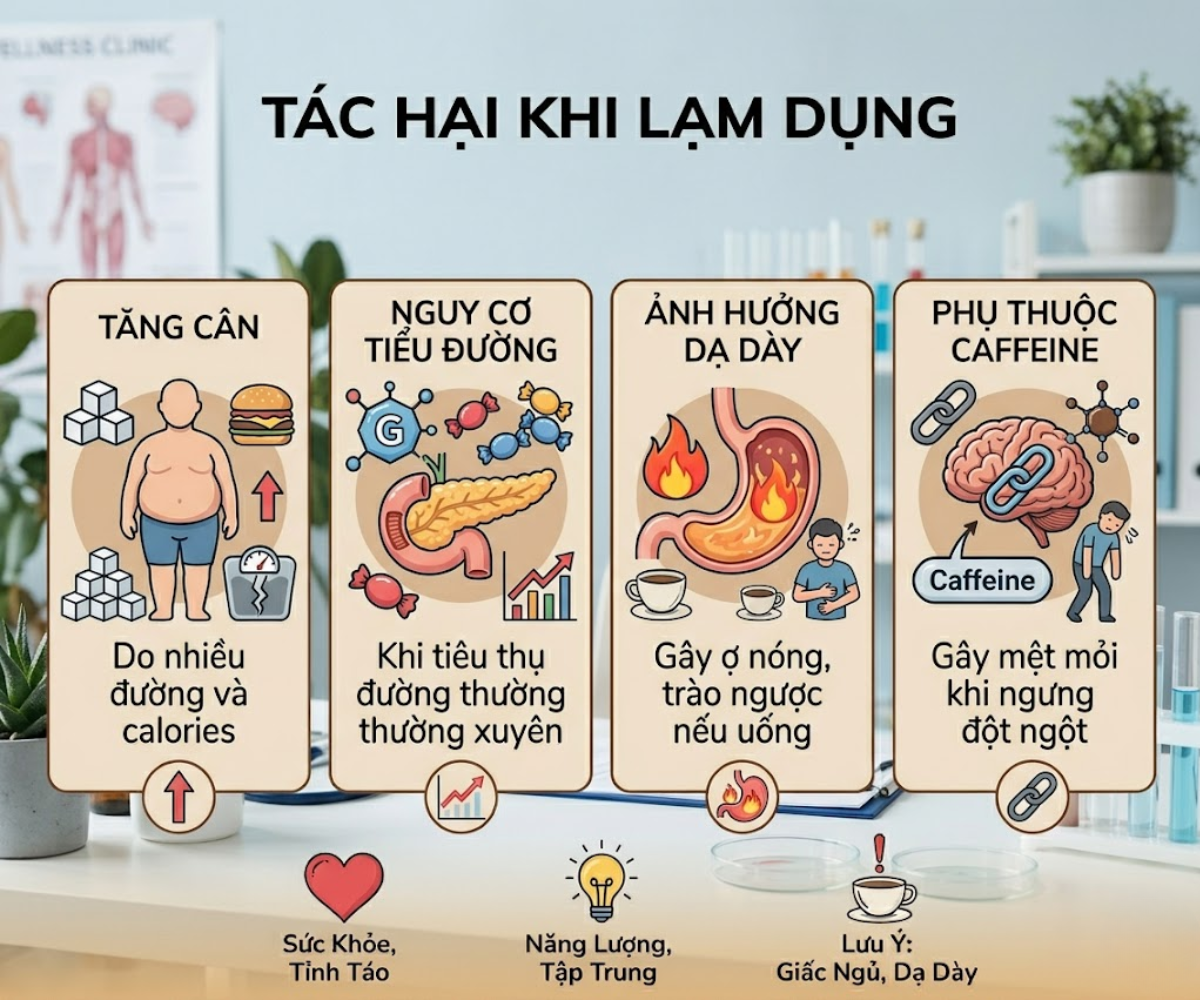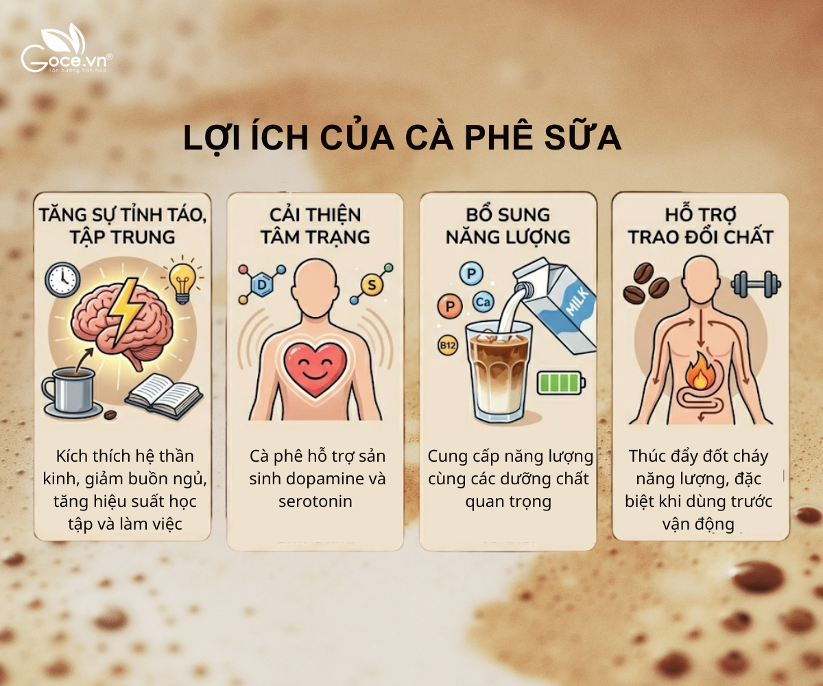 Milk coffee offers many benefits such as increased alertness, improved mood, and energy supply. However, for better health, you should control sugar intake, choose the right time to drink, and consume it in moderation.