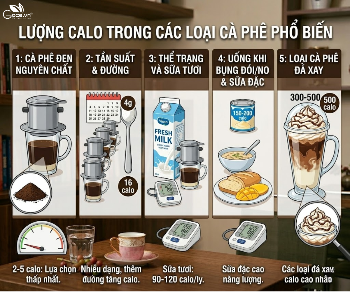 Lượng calo trong cà phê có sự khác biệt đáng kể tùy thuộc vào cách pha chế và các thành phần đi kèm. Dưới đây là phân tích chi tiết về lượng calo trong một số loại cà phê quen thuộc: