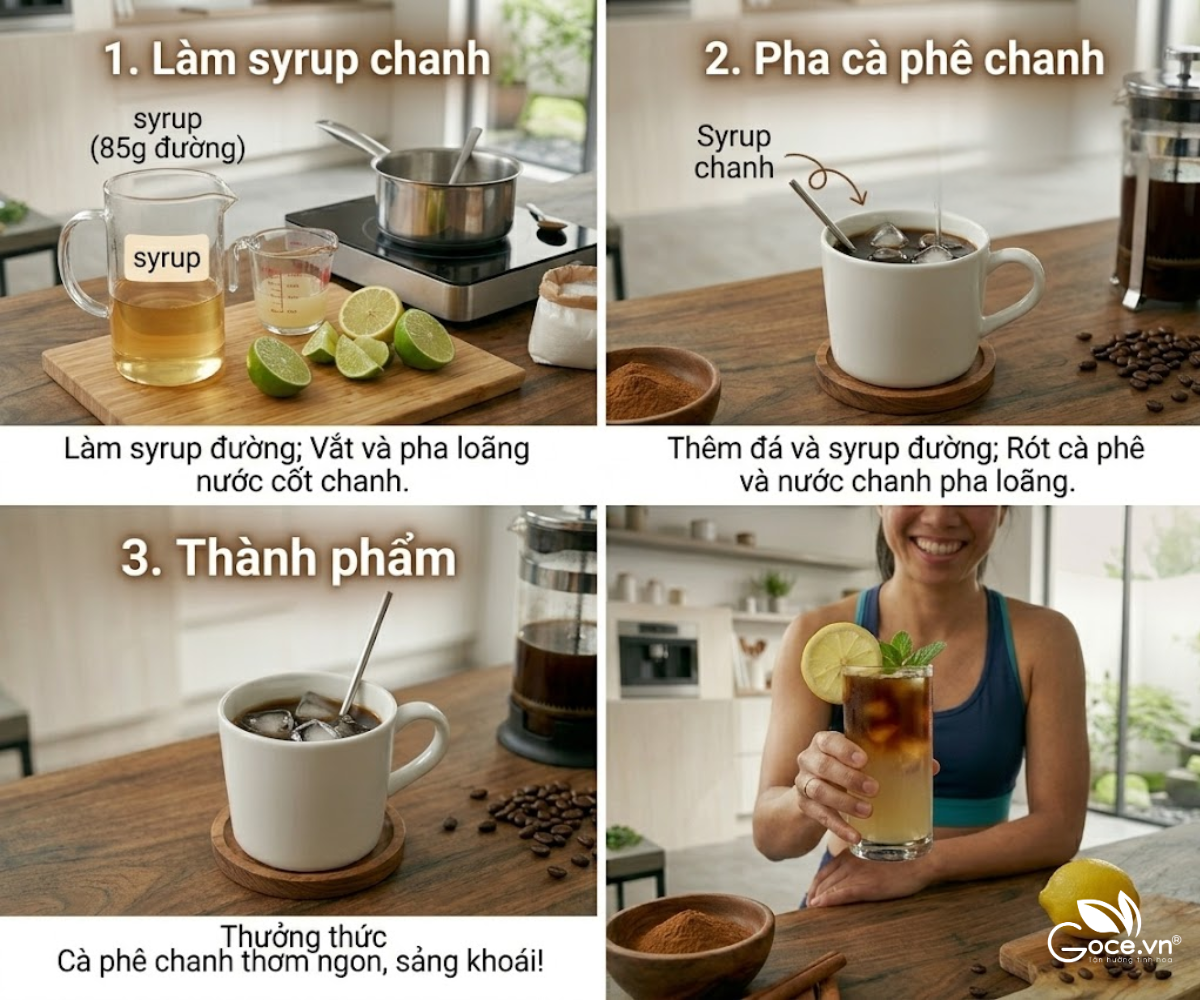 Chỉ với vài bước đơn giản, bạn đã có ngay một ly cà phê chanh thơm ngon, độc đáo. Vị đắng nhẹ của cà phê hòa quyện cùng vị chua thanh của chanh, thêm chút ngọt dịu của syrup và cảm giác mát lạnh từ đá sẽ đánh thức mọi giác quan, mang lại sự sảng khoái tức thì. Đây chắc chắn sẽ là thức uống yêu thích mới của bạn.