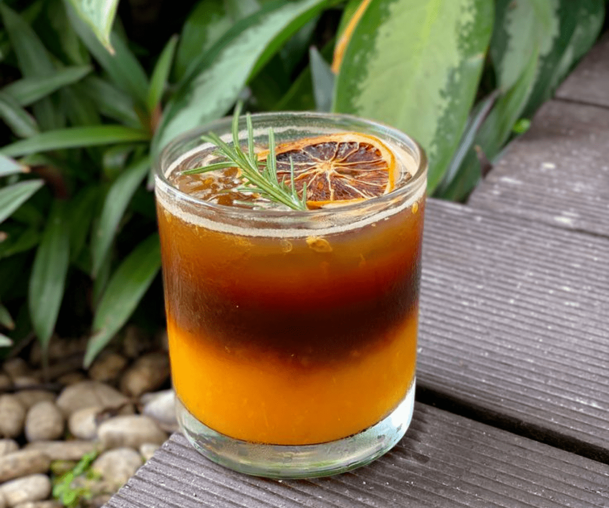 - Rót cà phê lên trên lớp cam, khuấy đều trước khi thưởng thức.