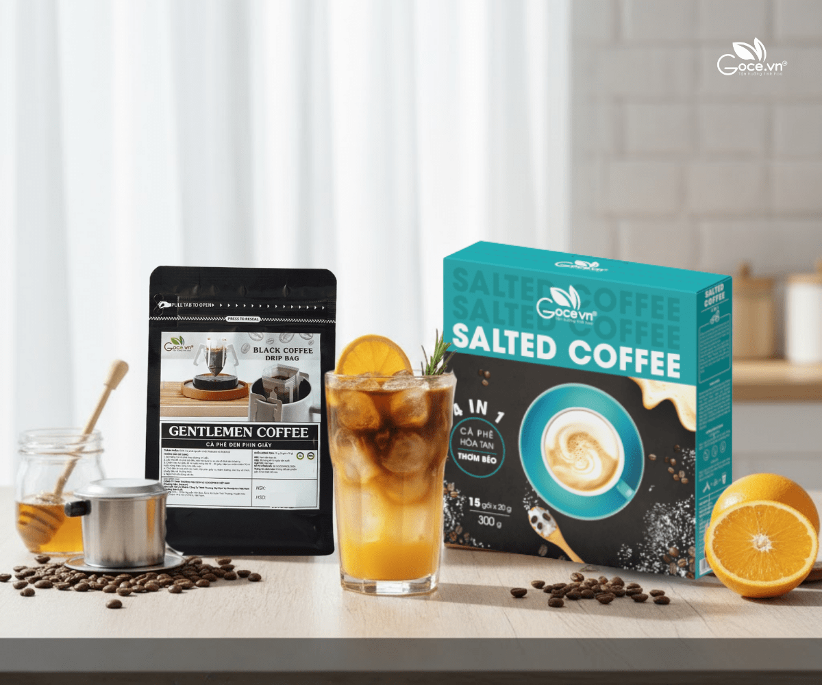 - Cà phê Goce: hạt rang hoặc phin giấy, đảm bảo hương thơm tự nhiên và đậm đà.