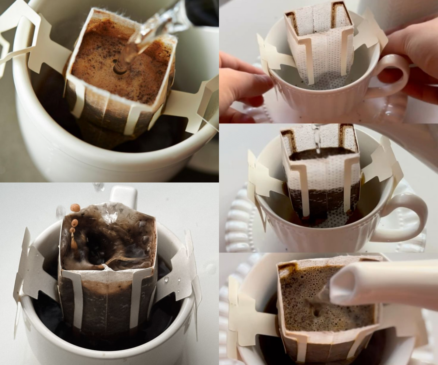 - Xé gói cà phê phin giấy dọc theo đường khía sẵn
