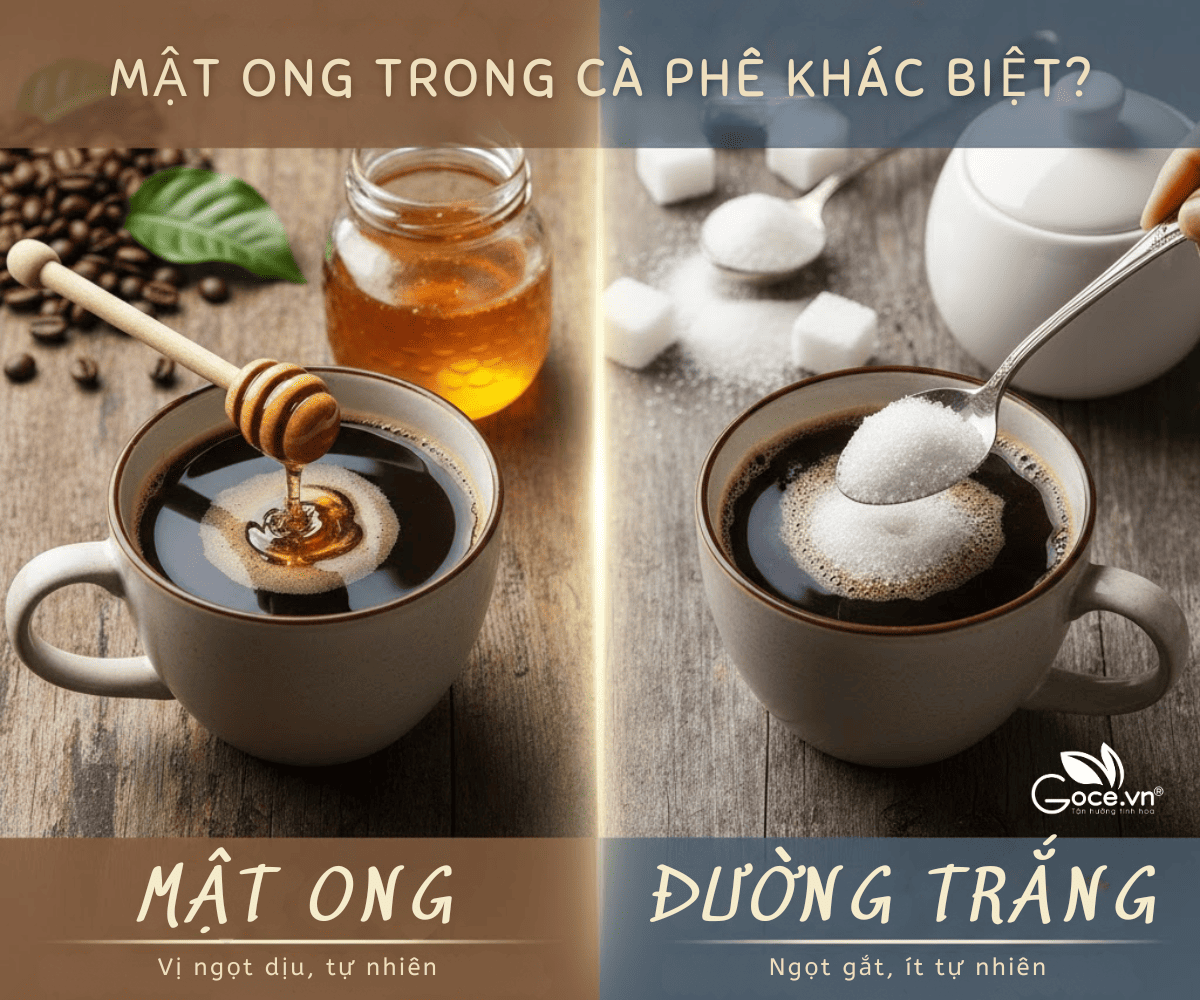 Mật ong và đường trắng trong cà phê khác nhau chủ yếu ở tốc độ hấp thụ đường, cảm giác năng lượng sau khi uống và tác động lâu dài đến sức khỏe. Đường trắng tạo vị ngọt nhanh và mạnh, trong khi mật ong mang lại vị ngọt dịu, chậm và có thêm giá trị tự nhiên.