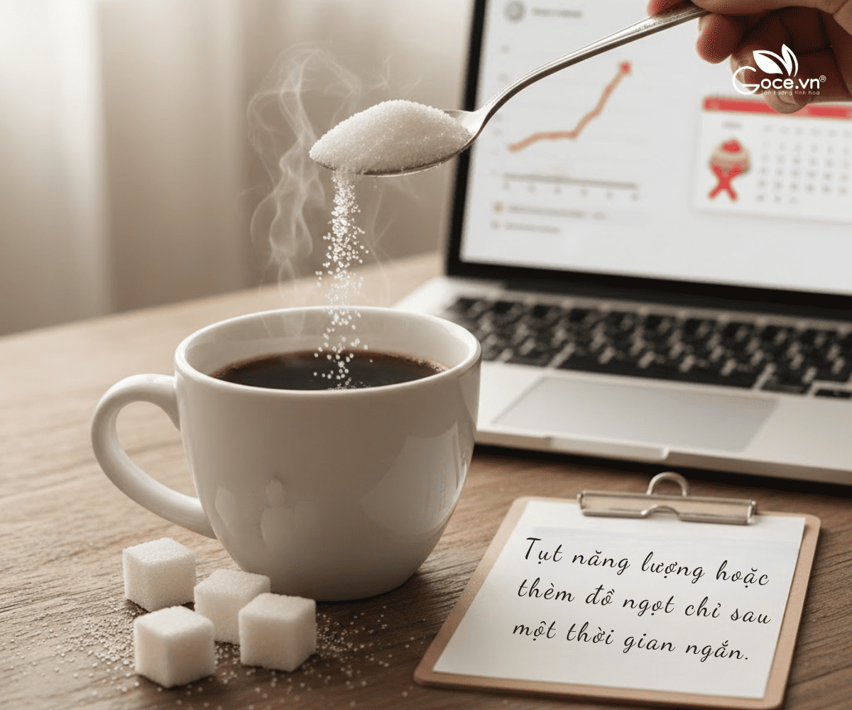 Tuy nhiên, cảm giác tỉnh táo thường đến nhanh rồi đi nhanh. Nhiều người gặp tình trạng tụt năng lượng hoặc thèm đồ ngọt chỉ sau một thời gian ngắn.