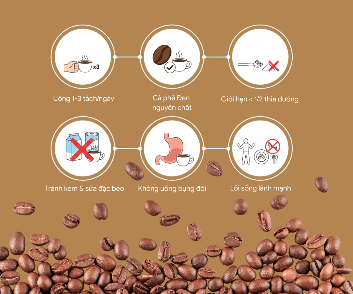 - Uống 1-3 tách cà phê mỗi ngày để đạt hiệu quả tối ưu