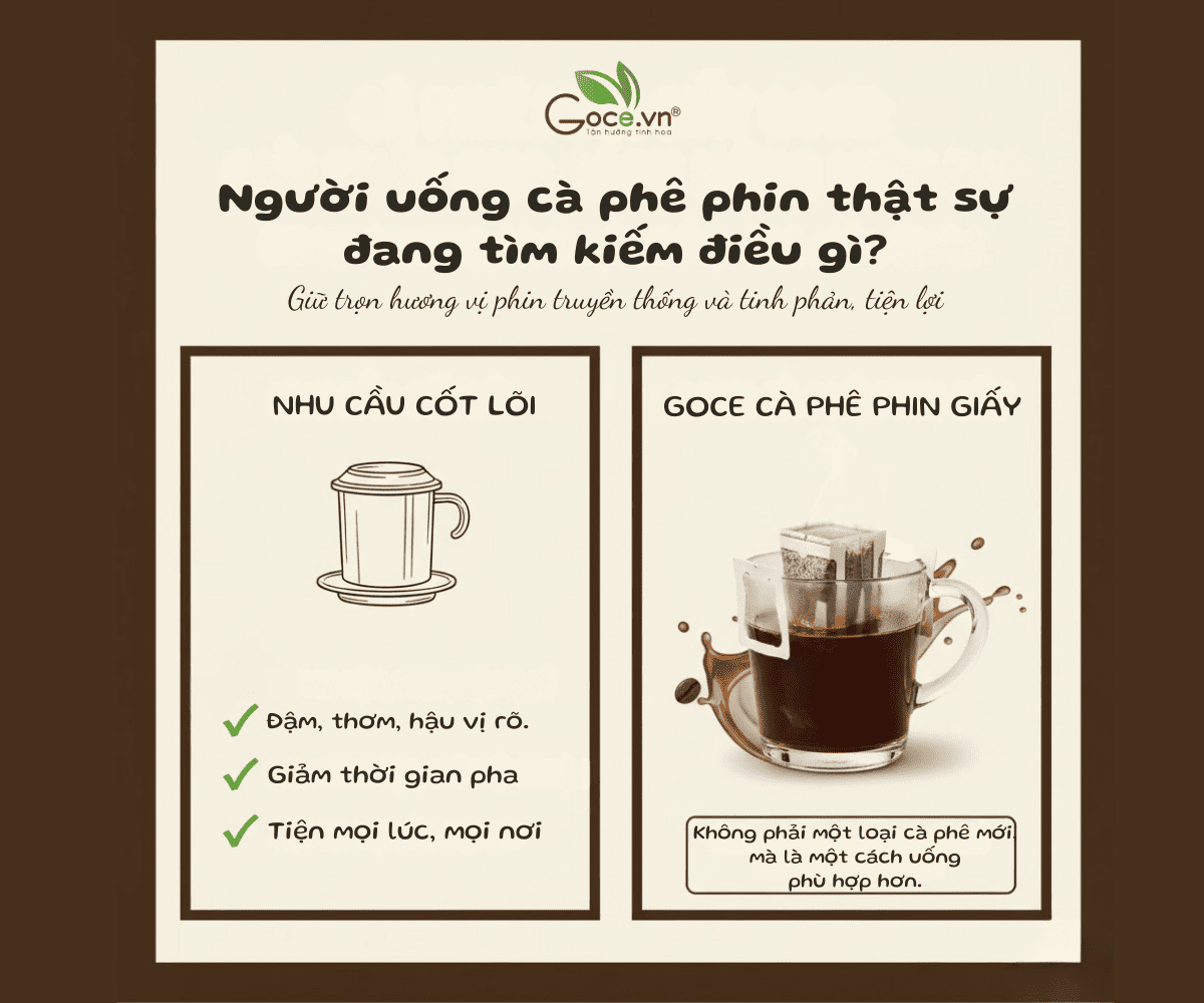Nếu bạn yêu vị cà phê phin nhưng đang tìm một cách uống phù hợp hơn với nhịp sống hiện đại, cà phê phin giấy Goce là lựa chọn đáng để trải nghiệm. Tìm hiểu thêm các giải pháp cà phê tiện lợi qua trang chủ chính thức Goce Coffee. Một thay đổi nhỏ trong cách pha có thể giúp bạn giữ lại trọn vẹn thói quen uống cà phê mình yêu.