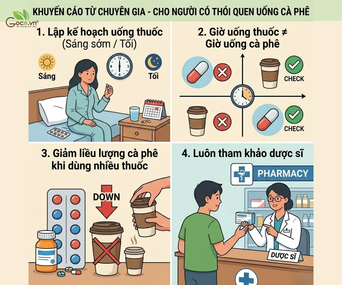 Hãy nhớ rằng, hiệu quả điều trị và sức khỏe của bạn luôn là ưu tiên hàng đầu. Nếu thói quen uống cà phê đang ảnh hưởng đến quá trình điều trị, đừng ngần ngại tham khảo ý kiến bác sĩ hoặc dược sĩ để được tư vấn cụ thể. Đôi khi, việc điều chỉnh nhỏ về thời gian hoặc liều lượng cà phê có thể giúp bạn vừa duy trì được thói quen yêu thích, vừa đảm bảo hiệu quả điều trị tối ưu.